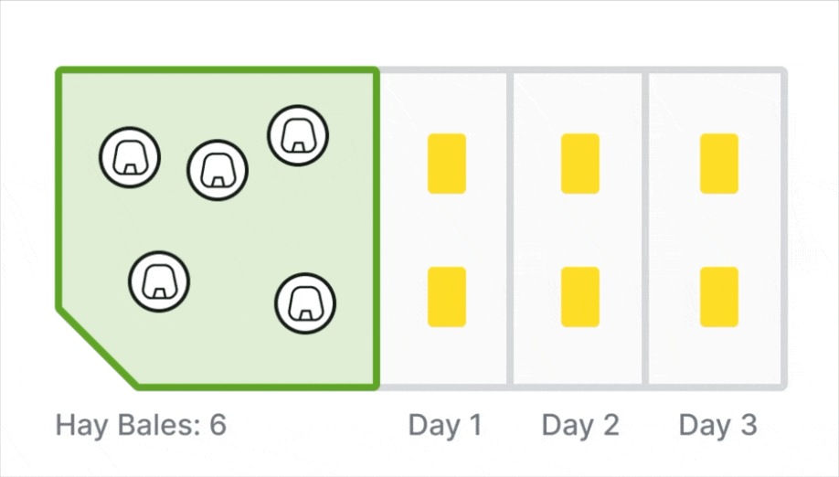 After rounding up the herd in preparation for transportation you can assign livestock to a new pasture further a field, simply select the livestock in the app, and press move. Within 2 minutes your current pasture will disable and your new pasture will be in a waiting state, meaning it will enable once the livestock is detected in the pasture zone. Simply transport the livestock into the new pasture and it will enable.