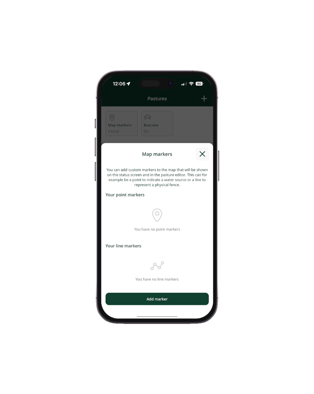 Mark water sources, gates, shelter, and hazard zones across your grazing area. Build a reference map and share it with your team.