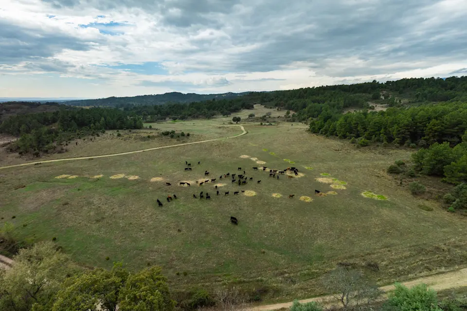 Los animales viven siempre en el exterior. Solo en momentos puntuales se suplementa con forraje; el resto del año el rebaño se alimenta exclusivamente de pasto. El manejo regenerativo, con alta densidad y largos periodos de descanso del suelo, está devolviendo la vida a los pastizales.