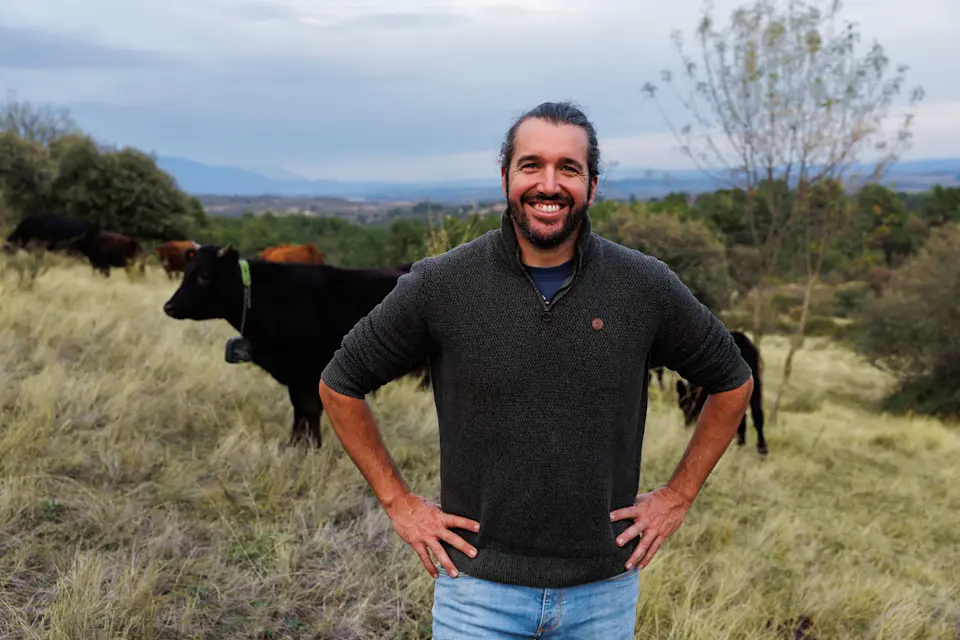 José Luis García de Castro es veterinario y ganadero regenerativo en Villanueva de la Vera, al norte de Cáceres, en el entorno de la Sierra de Gredos. Gestiona más de 200 hectareas con vacuno alimentado 100 % a pasto, apostando por un modelo productivo basado exclusivamente en los recursos naturales del territorio.