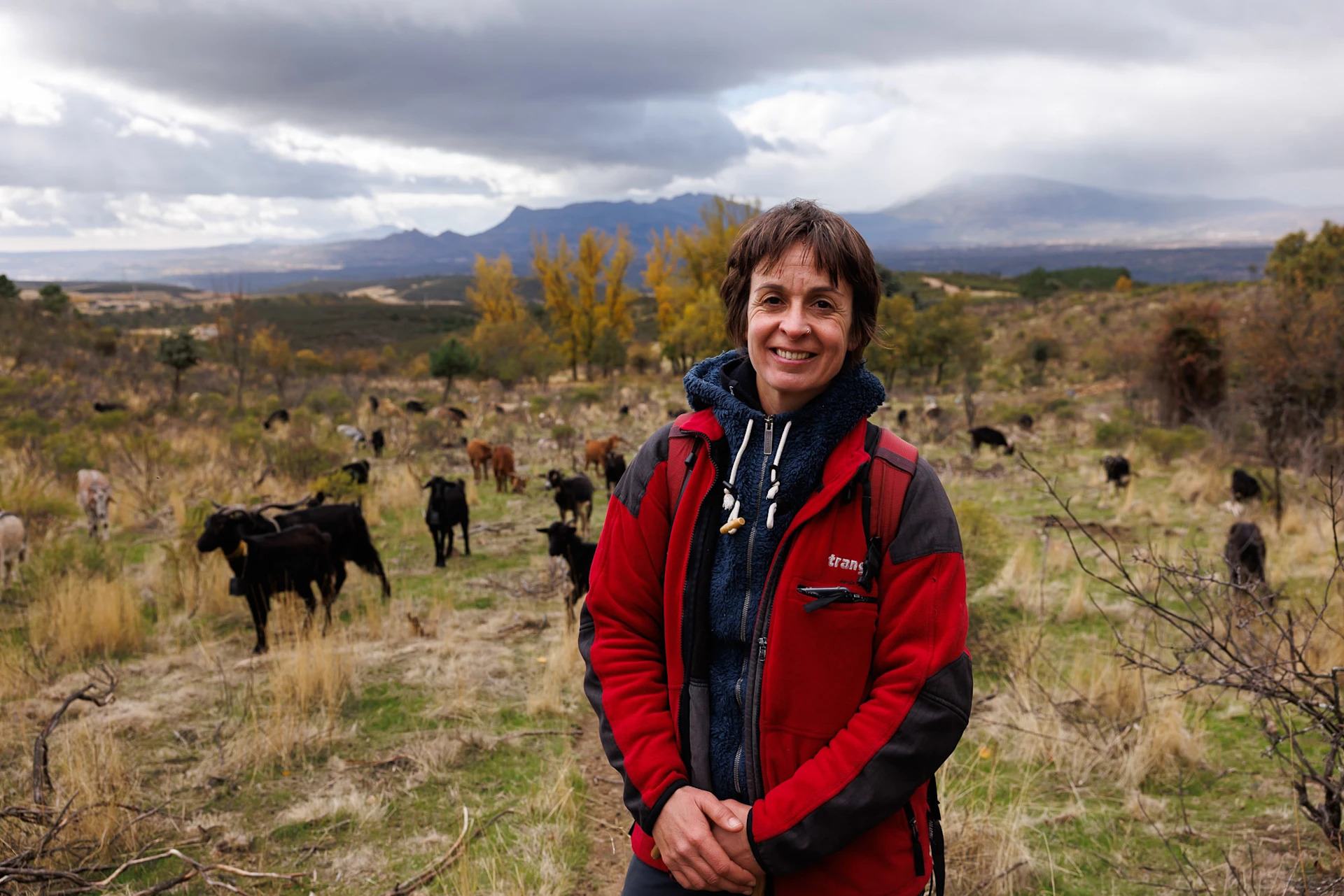 Clara Benito vive y trabaja en la Sierra Norte de Madrid, en el municipio de Berzosa de Lozoya, donde gestiona un rebaño de unas 160 cabras. Su proyecto, Entre Lobas Pasto Salvaje, combina ganadería extensiva, restauración ecológica y prevención de incendios en una zona con alto riesgo debido a la gran acumulación de matorral.