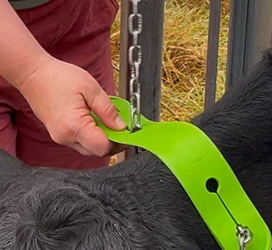 Adjust the chain so the collar can not slip over the cow’s ears.
