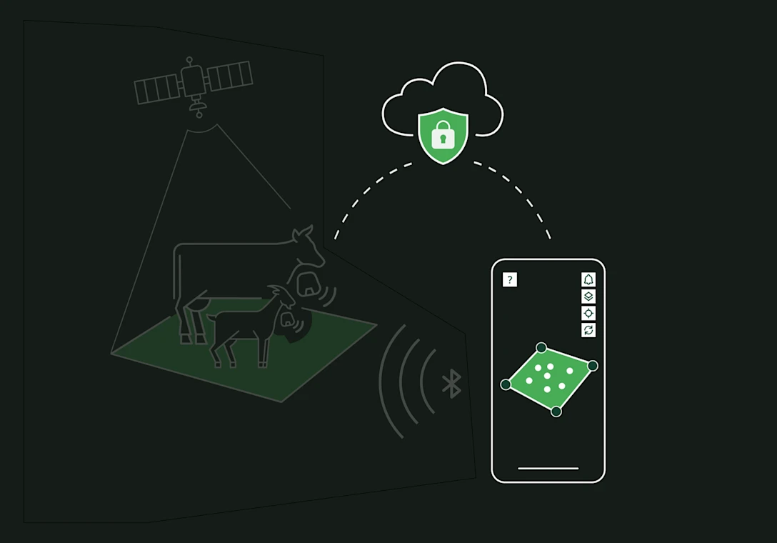The virtual fence still works using GPS. You'll get infrequent updates, and can remove livestock using Bluetooth from your phone when on-site. Suited for: Large pastures with seasonal moves (40m²+)