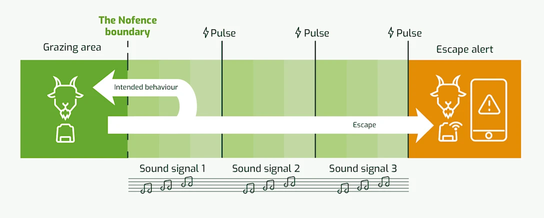 Nofence uses a layered approach to keep your livestock within the boundary.