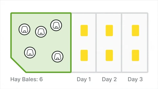 With Nofence you can set up hay bales less often with virtual fencing. Many Nofence users have recommended laying out rows of bales and then extending the boundary periodically to cover an additional row of hay bales. This means you can give access to bales on your terms wherever you are directly from the app.