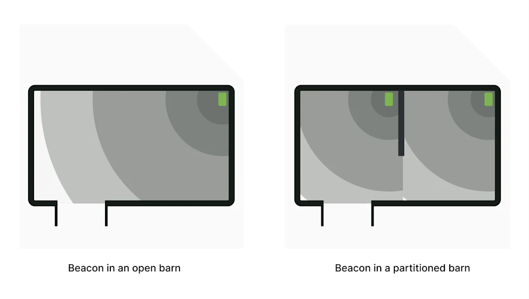 If the beacon is placed too close to your virtual boundary, it can create a gap in the fence where livestock could leave without receiving a warning. To avoid this, either move the beacon further into the building or move the virtual fence line further from the shelter. Shelter beacons are only intended to be used inside a roofed structure.