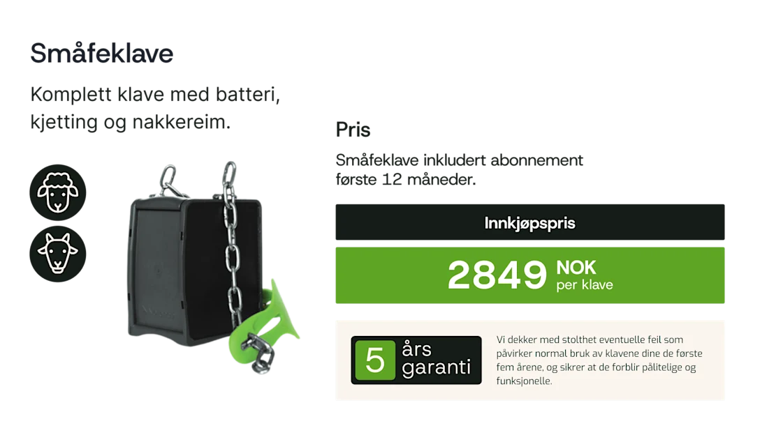De første 12 månedene er inkludert ved kjøp av klave. Etter det velger du abonnementet som passer din gård best.