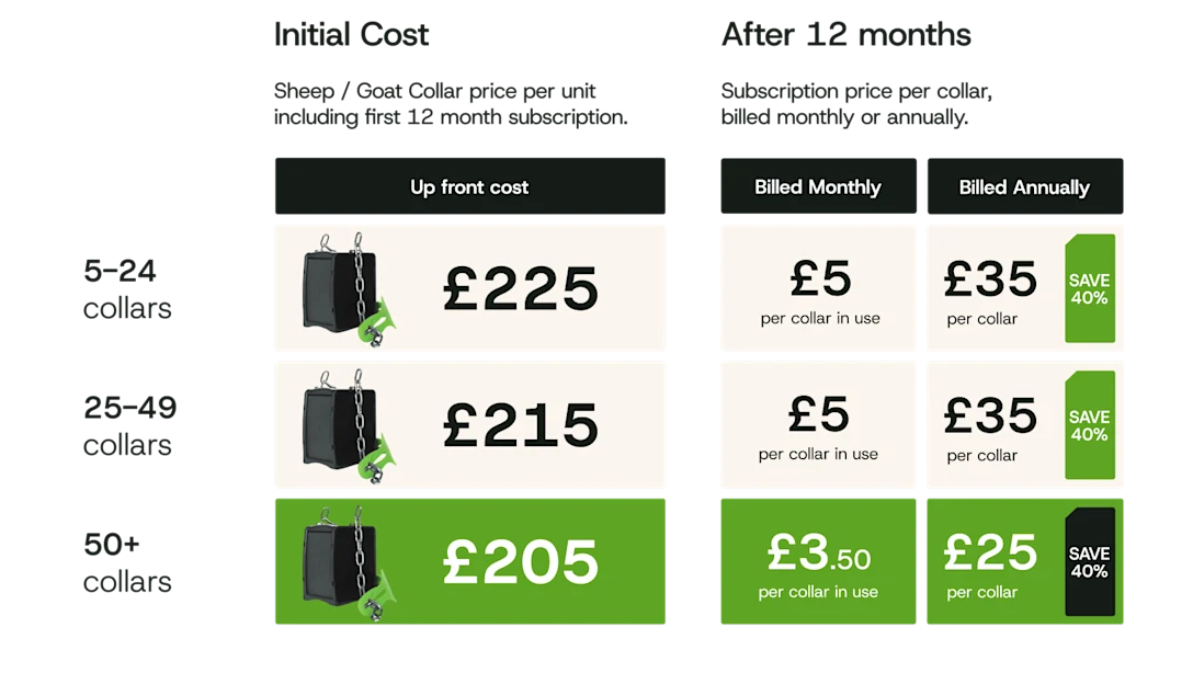 See collar pricing, what's included, and subscription options for your flock size.