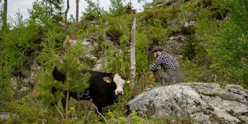 På Fladby gård i Gjerdrum bedriver Kristoffer och hans pappa köttproduktion med Norsk Gråfe, en robust köttras som trivs i backig terräng och stora utmarker. Med Nofence har de kunnat använda betesmarker som tidigare var otillgängliga.